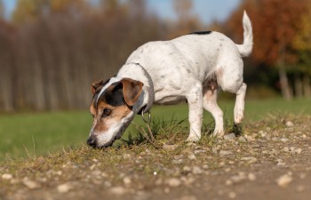 Deja que olfatee el premio y baja la mano hasta el suelo suavemente delante de él.
