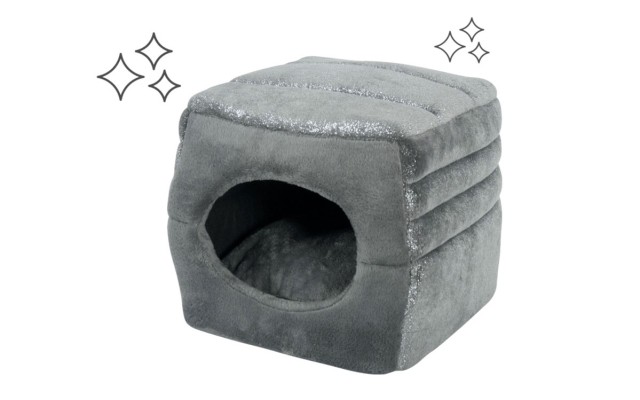 La gama de confort para gatos Mademoiselle combina hábilmente el confort delicado con elegantes toques brillantes. La inimitable Charentaise y el ultrapráctico Cube 2 en 1 acompañan a los clásicos iglús y mantas, sin olvidar la cuna Doudou.