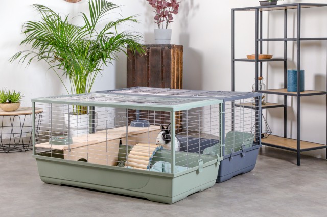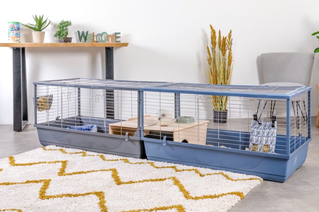 Los hábitats son principalmente adecuados para las cobayas, pero también para los conejos. Se venden individualmente y pueden conectarse sólo con un hábitat del mismo tamaño. Los clips de conexión especialmente adaptados permiten conectar las jaulas entre sí. Estas piezas de sólido plástico garantizan una instalación rápida y sencilla.